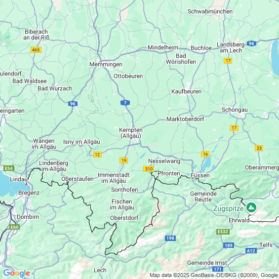 Städte in der Nähe von Bad Hindelang