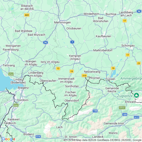 Städte in der Nähe von Bad Hindelang