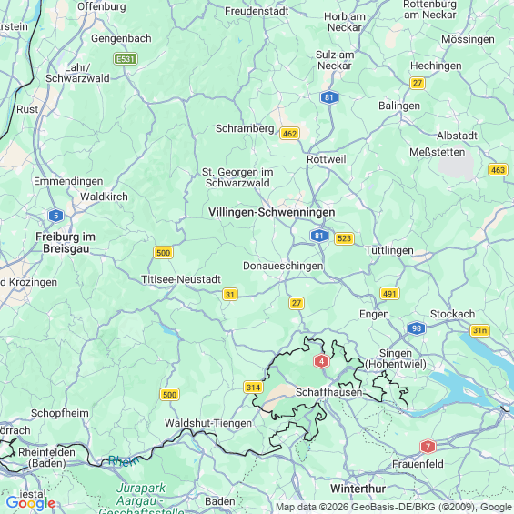 Städte in der Nähe von Donaueschingen