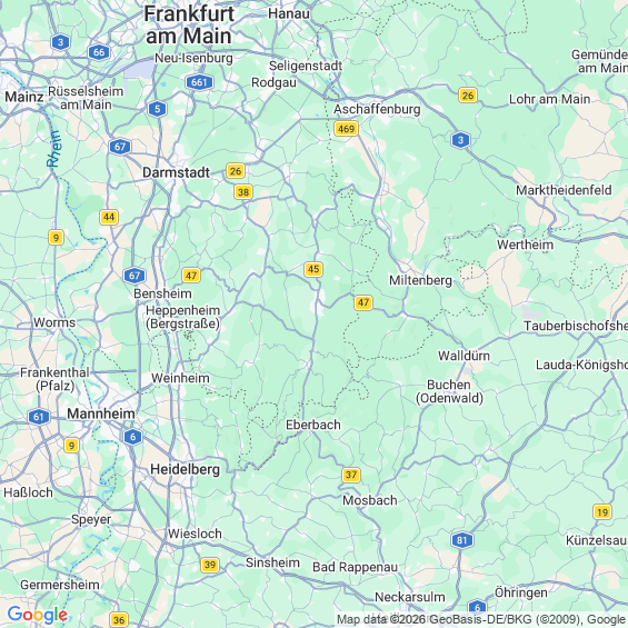 Städte in der Nähe von Erbach Odenwaldkreis