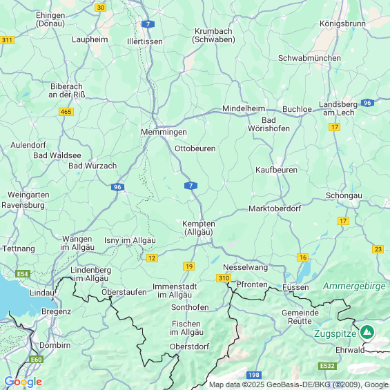 Städte in der Nähe von Kempten (Allgäu)