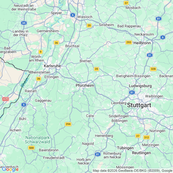 Städte in der Nähe von Pforzheim
