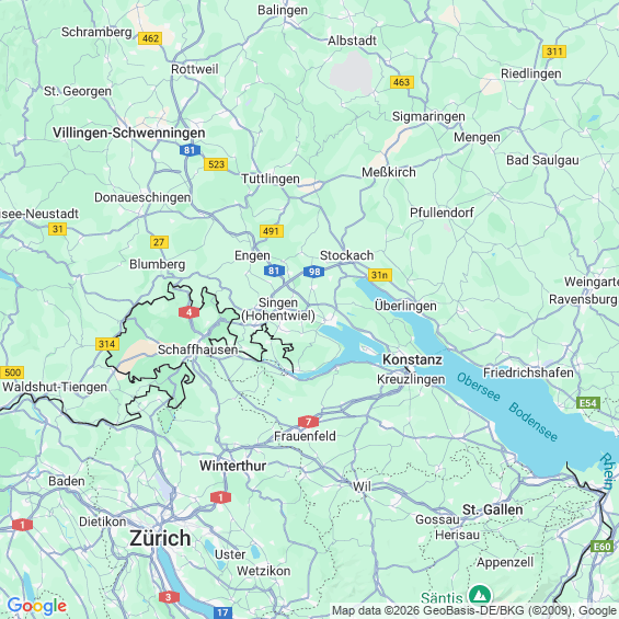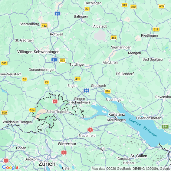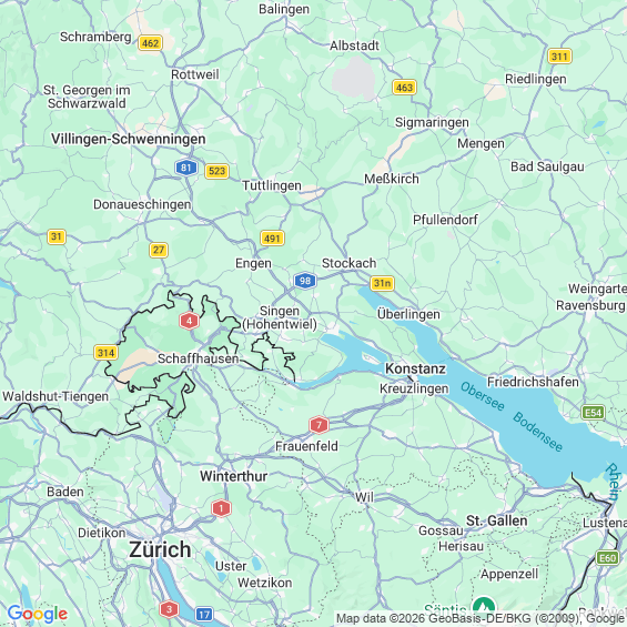 Städte in der Nähe von Singen (Hohentwiel)