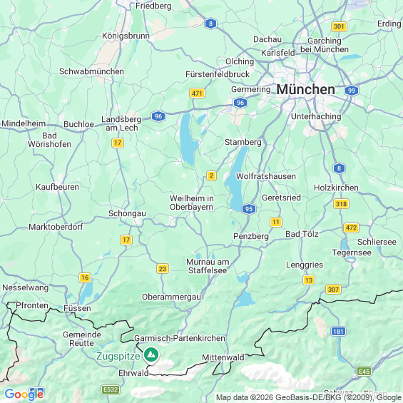 Städte in der Nähe von Weilheim in Oberbayern
