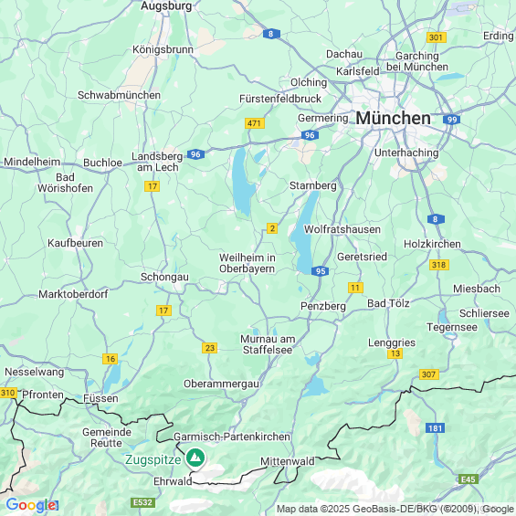 Städte in der Nähe von Polling Weilheim-Schongau